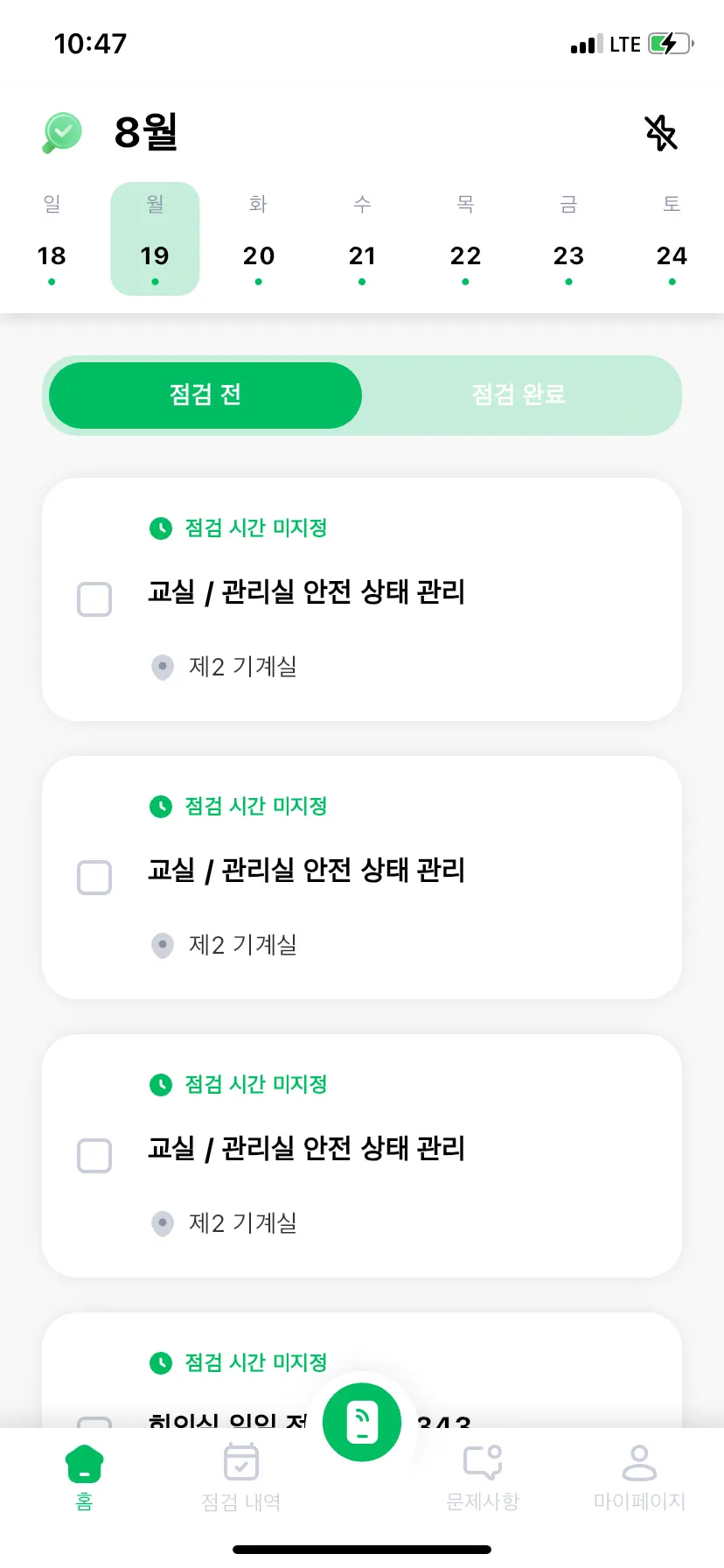 점검 중 이상이 있는 경우 관리자에게 문제 사항을 등록하여 조치할 수 있어요.