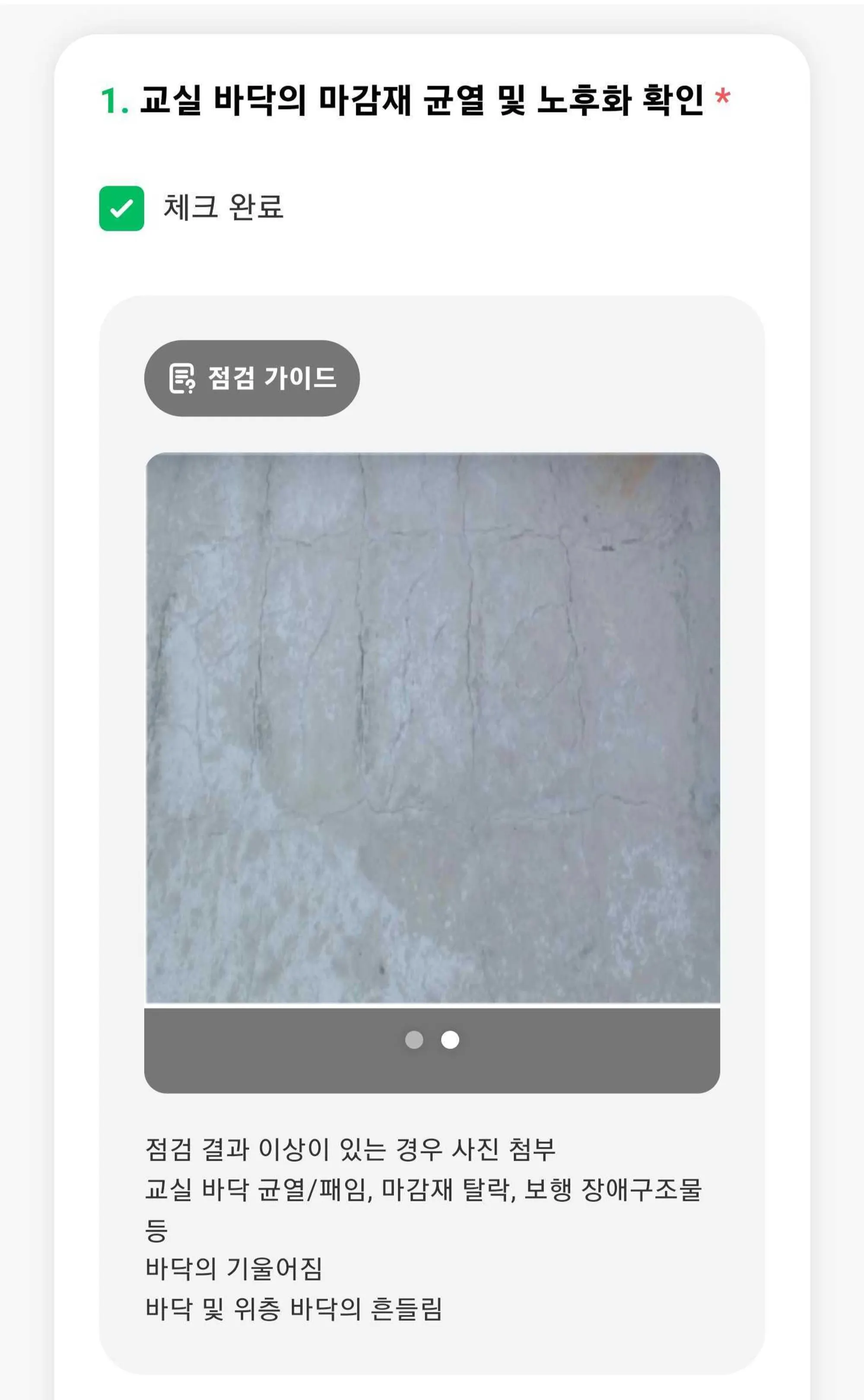 예를 들어 어떤 경우에 사진을 찍는지, 문제사항을 입력해야 하는지, 어떤 부분을 점검해야 하는지 점검자가 자세하게 알 수 있어요.