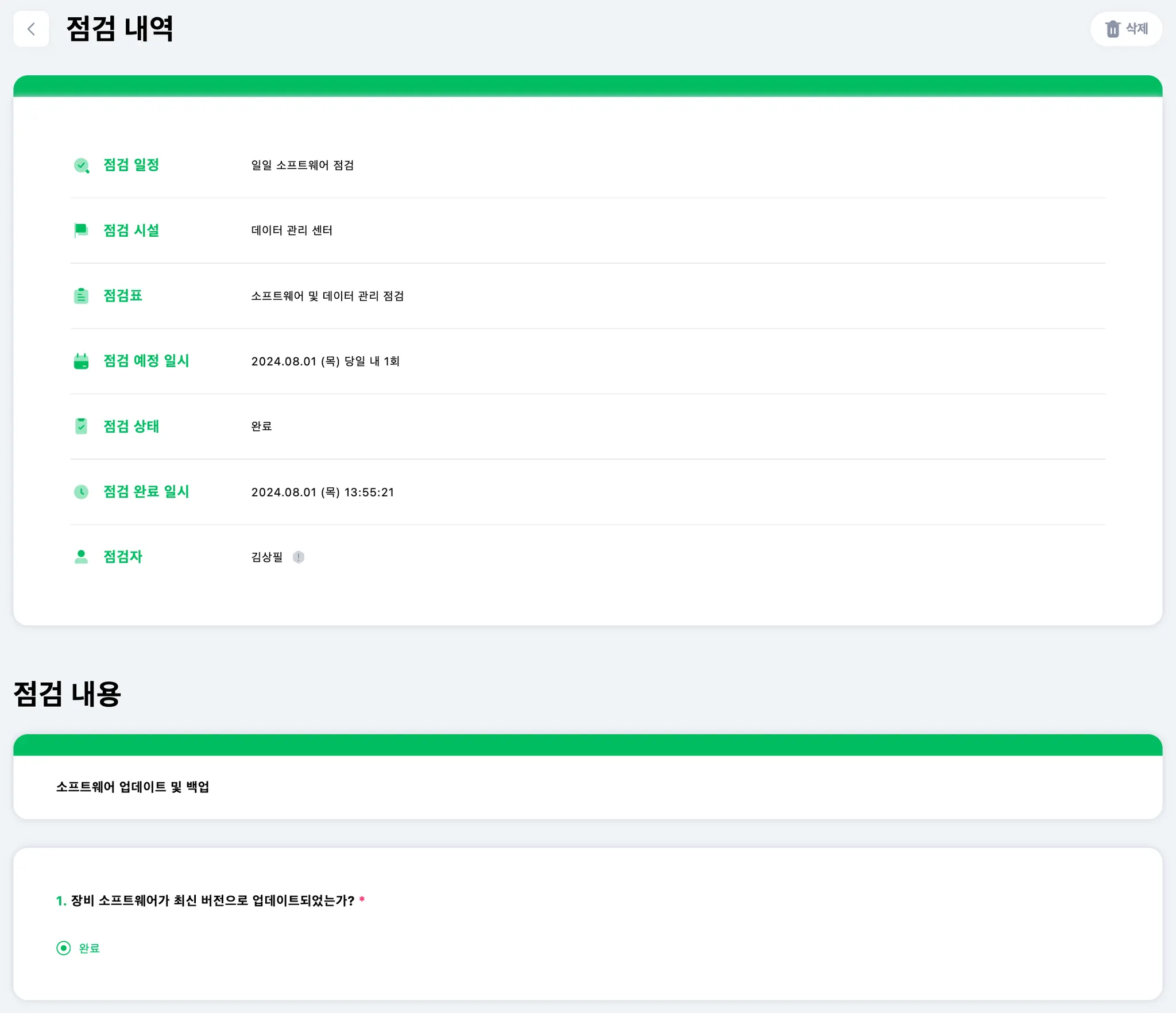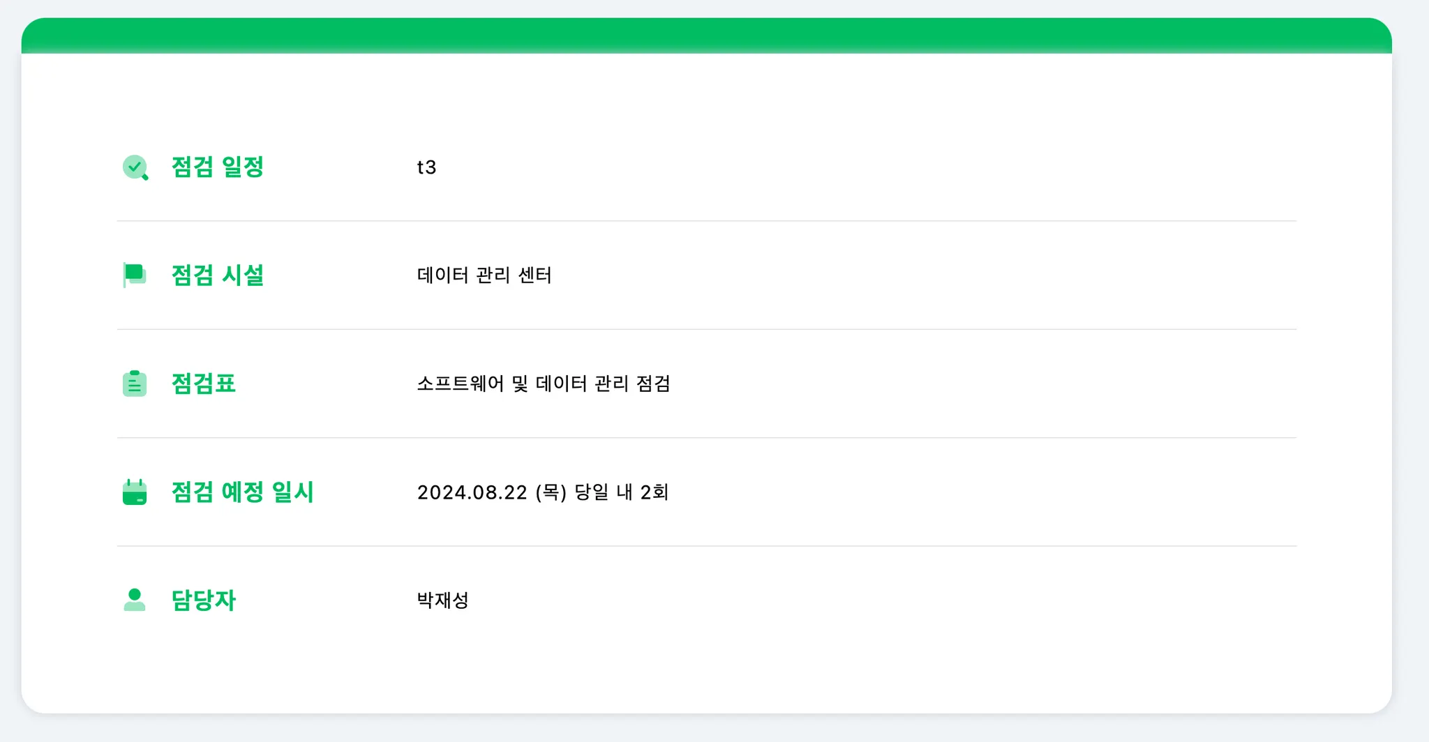 점검 캘린더 내에 점검 제목을 클릭하면 점검 내역을 확인할 수 있어요.