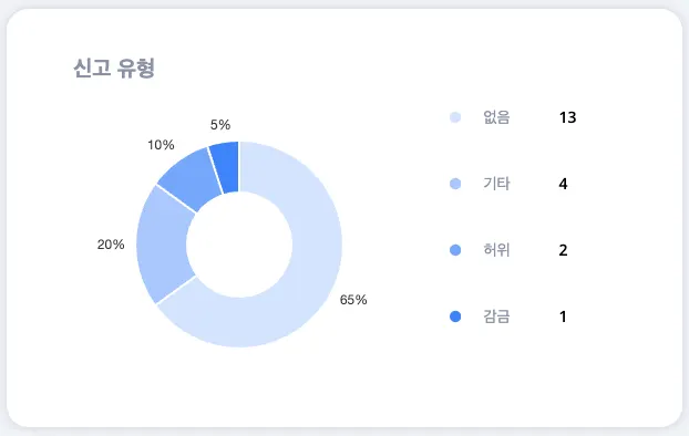 선택한 기간 동안 접수된 신고 건들의 유형을 모아 볼 수 있어요.