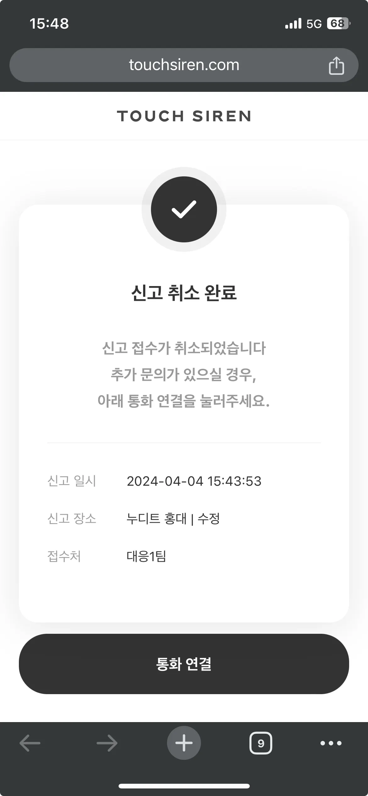 사용자가 신고 직후 5초 내에 취소 버튼을 누를경우, 해당 신고는 자동으로 “취소” 상태로 변경돼요.