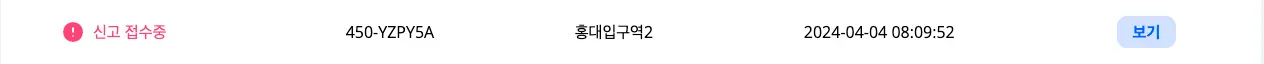 접수된 모든 신고는 확인 전까지는 모두 “신고 접수중” 상태가 돼요. 이 상태는 신고가 들어왔지만 아직 아무도 확인하지 못한 상태이므로, 빠른 확인 및 대응이 필요해요.