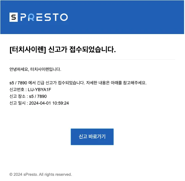 터치사이렌은 신고가 들어왔을 때 가능한 빨리 담당자들에게 알리기 위해 다양한 방법으로 알림을 보내고 있어요.