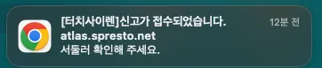 아틀라스 페이지가 열려 있는 상태에서 다른 페이지를 보고 있어도, 신고가 들어오면 브라우저 알림을 받을 수 있어요.