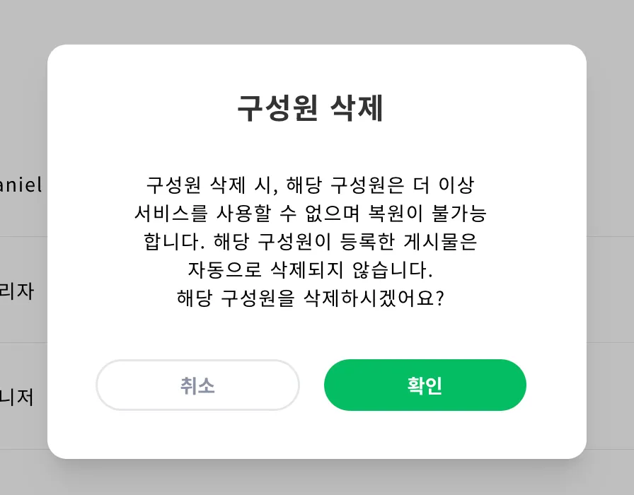 (이 기능은 관리자 등급의 구성원만 사용할 수 있는 기능입니다.)