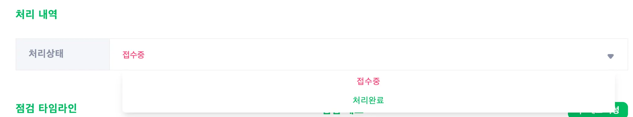 처리가 완료 되었을 경우 처리 완료로 상태를 변경 후 아래 저장 버튼을 눌러 처리 상태를 변경해 주세요.