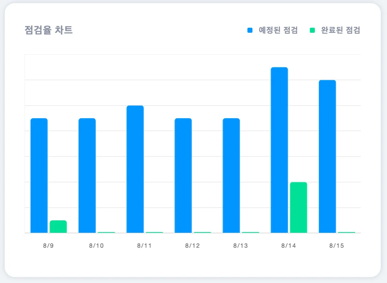 선택한 기간 동안 예정된 점검과 완료된 점검의 비율을 보여줍니다.