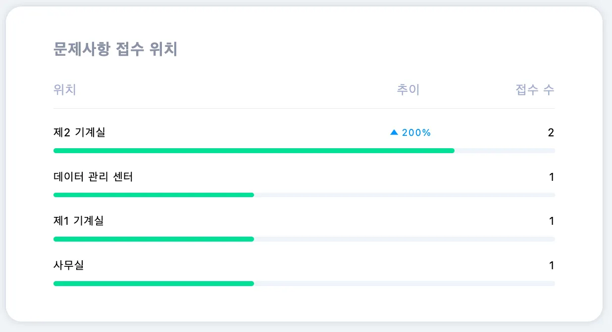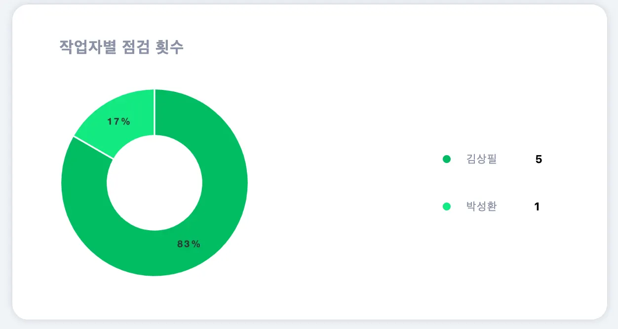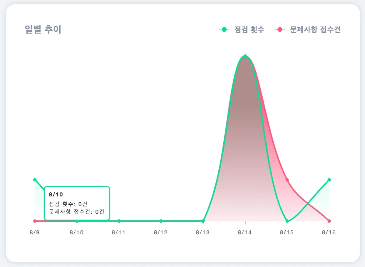 선택한 기간 동안 점검된 시설 별 점검 추이를 확인할 수 있어요.